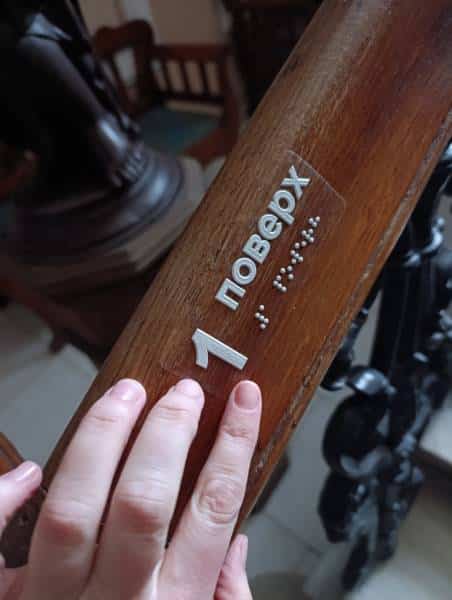 Підкреслюється, що нові тактильні вказівники розміщені на поручнях та стінах. Вони вказують шляхи від входу до Колонної зали та Музичного салону філармонії, гардеробу та службових кімнат. Рельєфні плани (мнемосхеми) на кожному поверсі показують плани термінової евакуації з будівлі.