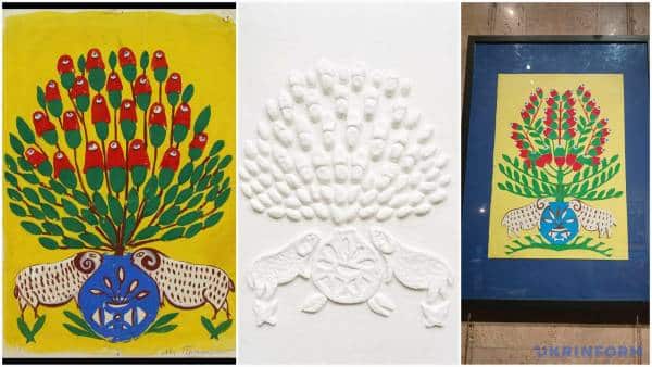 А Оксана Цюпа, створюючи омаж «Помідорів у вазі» Марії Примаченко, створила яскраву текстильну аплікацію. Відвідувачам київської виставки мисткиня розповідає: «Завдяки цій художниці я не боюся відкритих кольорів, люблю стилізації та орнаменти».
