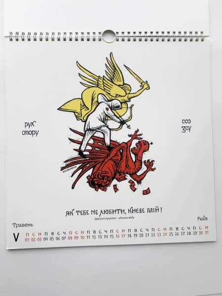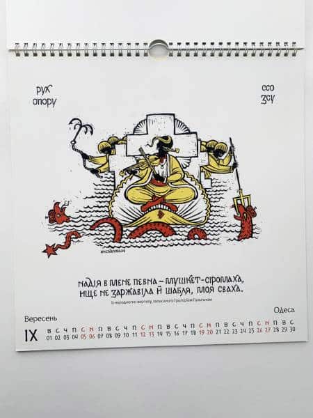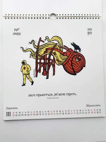 В календарі навіть з’явилося зображення на честь спецоперації з нищення російського стаціонарного трасового радіолокаційного комплексу ТРЛК-10 «Скала-М», що знаходився в Абрикосівці в Криму. Ворожий об’єкт тут змальований в образі «Ока Саурона», яке дзьобає крук — один із символів Руху опору.