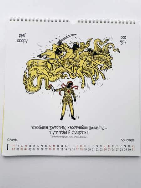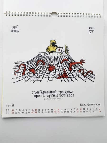 «Боротьба є не тільки збройною, а й культурною та інформаційною. З цієї причини в календарі представлені також Львів, Київ та Івано-Франківськ — міста, що утворюють смисловий простір опору», — роз’яснив Скоп.
