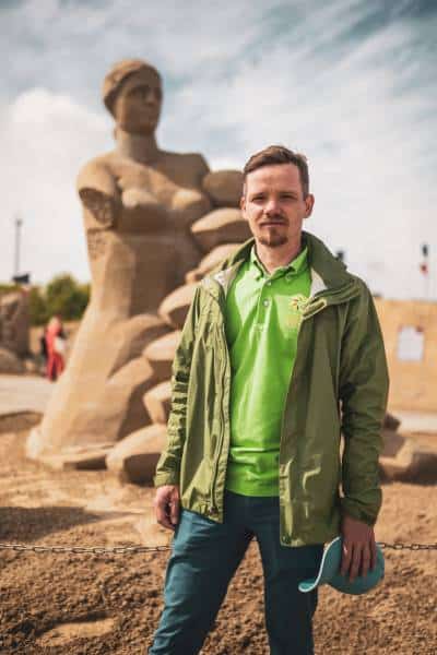 Піщані скульптури можуть частково готуватись завчасно. До латвійської Єлгави на подібний до цього конкурс Олекса надсилав креслення майбутньої роботи.