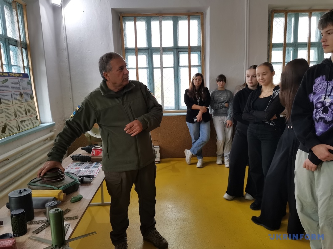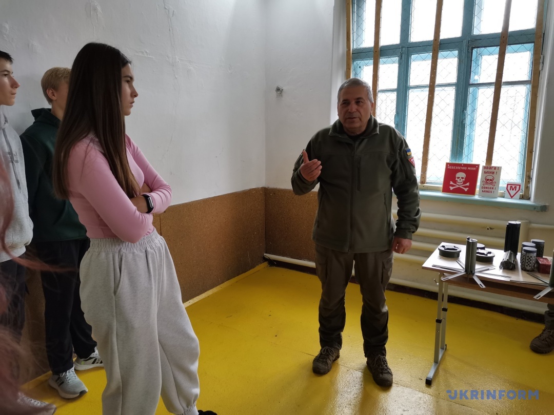 А далі – розповідь про міни-пастки, «розтяжки», міни-пелюстки… Всі вони, знешкоджені, – перед очима, на столі. Все те, чим ворог намагається вбивати українців. Їх із дозволу фахівця можна роздивитися зблизька і навіть відчути в руці холод смертоносного металу. Підліткам доводиться усвідомлювати, що смертельна небезпека може чекати на кожному кроці. І розуміти, що кіношні міфи та штампи в реальності не працюють. Що, наступивши на міну, не треба чекати, що на ній вдасться простояти, аж поки не приїдуть сапери, – вона одразу вибухне…