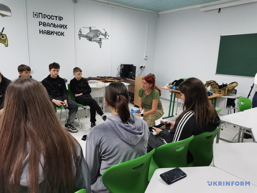 За ноутбуками освоюють програму польотів на дронах дівчата. Вони надягають VR-окуляри, ніби опиняються в кабіні літака та спостерігають за всім, що «бачить» дрон. У засвоєнні такої техніки хлопцям не поступаються. Тим паче, що нова філософія навчання вважає розподіл на гендерні ролі в обороні України неможливим. Кожен українець, незалежно від статі, має вміти захистити себе та мати оборонну свідомість.
