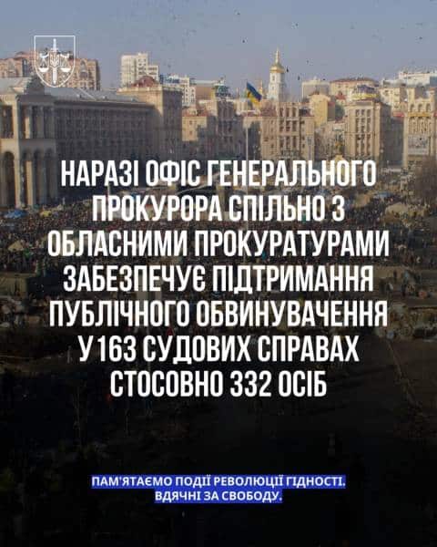 Прокурори Офісу генерального прокурора підтримують публічне обвинувачення у 163 "Справах Майдану".