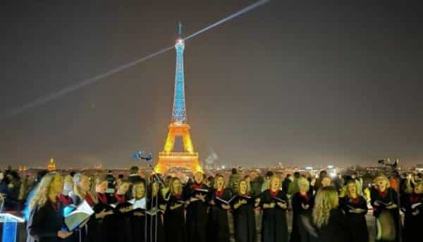 На спеціальній церемонії, організованій за підтримки мерії Парижа, заспівав також хор українських жінок Chœur de femmes Ukrainessence, передає кореспондент Укрінформу.