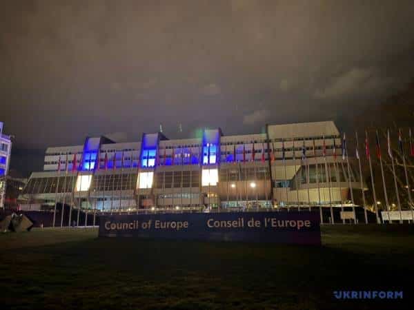 Тим часом у Страсбурзі жовто-блакитними кольорами підсвітили Палац Європи.