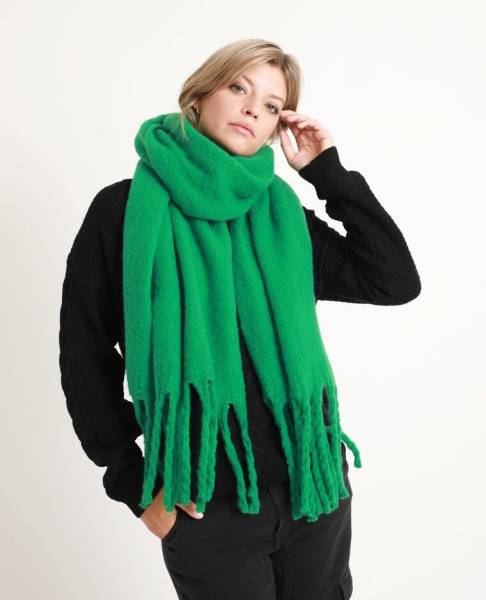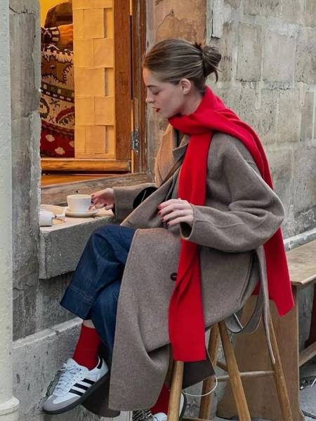 Звісно, не варто обирати шарф, котрий підмітатиме за вами болото зі снігом на вулиці, а ось в’язаний шарф із китицями, що сягатиме колін після одного обертання навколо шиї — саме те, що треба! Для найкращого візуального ефекту колір наддовгого шарфа обирайте контрастним до верхнього одягу. Виграшні та яскраві поєднання: